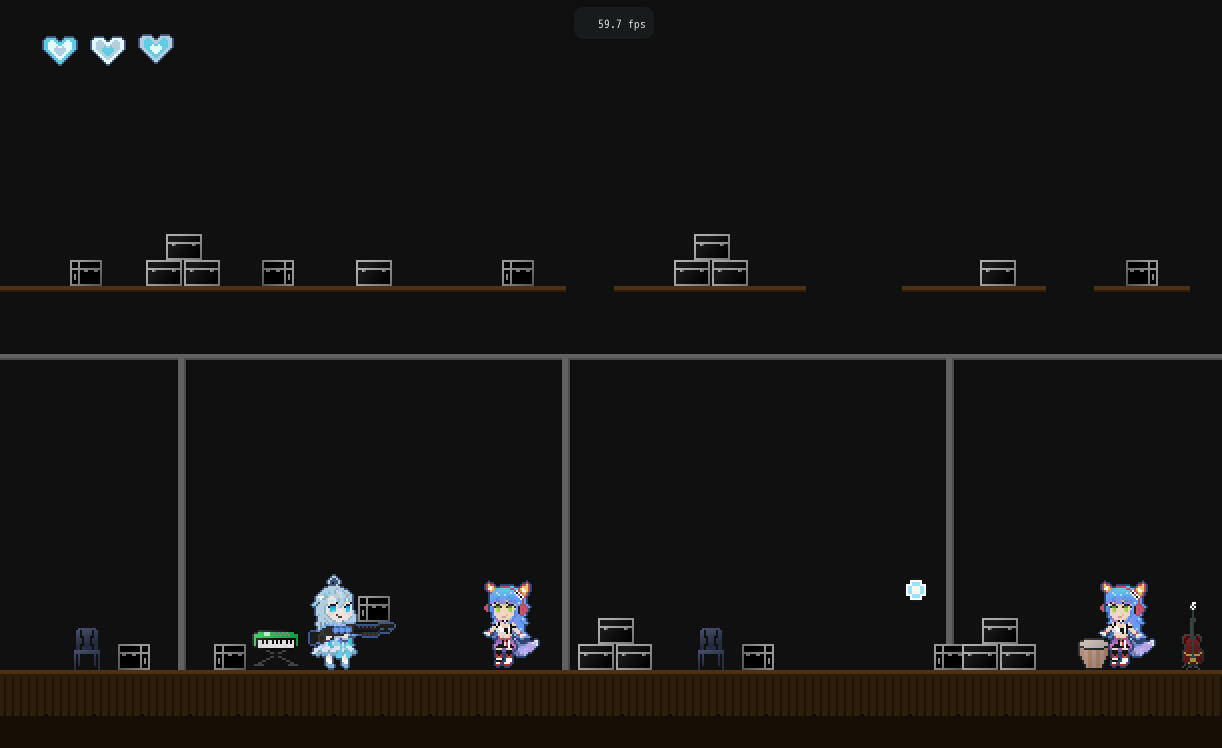 After defeating the boss, the credits are shown during an animated music video that I made with the engine too. During this you can play a small minigame where you shoot fans (with love) whenever the try to climb on stage.On my twitch channel I usually stream myself working on this project and a lot of the thought process was done live. Through those many streams, this game had a lot of changes. For example, I added a rhythm aspect where you need to shoot on the beat to gain invincibility. On top of that I also wanted to make it semi-3D by adding a perspective. However, after a lot of coding and putting too much effort into these aspects, I realized it worked better without those.Same goes for some enemies I created. One shot water at you, one shot bubbles and a couple more. These were there to show what kind of moves Bao would use in her boss fight, but they hindered the flow more than they added!So after all the reworking, I have made a fun precise platformer with a mutiple difficuties, a boss fight and a minigame in one! Where the focus lies on perfecting one mechanic and following the cheesy story of two frieds fighting evil!